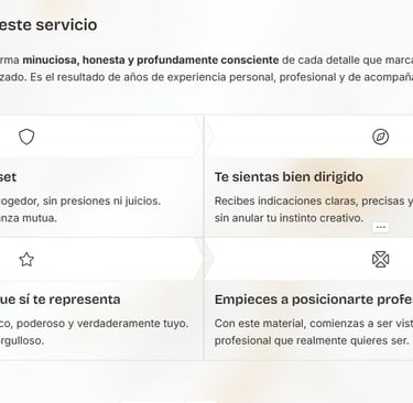 Este no es un servicio donde te sientas y yo hago todo. Requiere tu participación activa, tu energía y tu voluntad de entrar en un proceso creativo real.